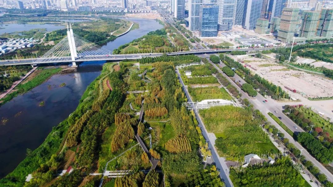 融合在都市肌理中的绿色生态廊道,凸显现代化新城的江南水乡特色。