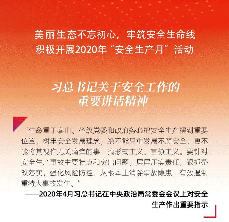 2020年6月是第19个全国“安全生产月”。5月12日,国务院安委会办公室和应急管理部联合下发通知,以“消除事故隐患,筑牢安全防线”为主题,部署开展全国“安全生产月”和“安全生产万里行”活动。